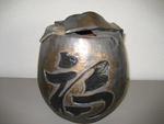 2020Ze zijn raku gestookt dat wil zeggen eerst in een binnen oven daarna glazuur erover en in een buitenoven weer gestookt en afgekoeld in een ton met zaagsel.